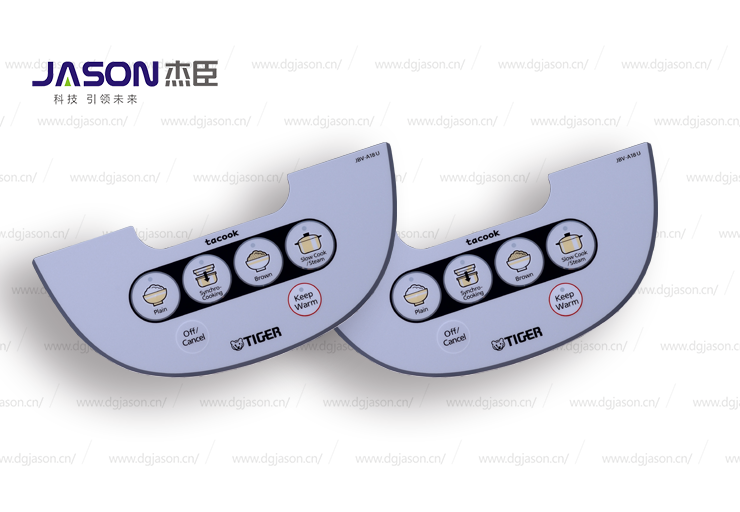 三層設(shè)計,上、中、下三層導(dǎo)電膜,上、下層分別印有電路連線及按鍵觸點,中間隔層上有上、下觸點層對應(yīng)的圓孔,隔層的作用是防止上下層電路短路。